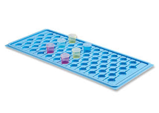 Bandeja de poliestireno para transportar y guardar vasitos o dispensadores. Adaptable a los carros de medicación Wiegand ref. 60.3A. Capacidad máxima de 69 vasitos o 23 dispensadores.