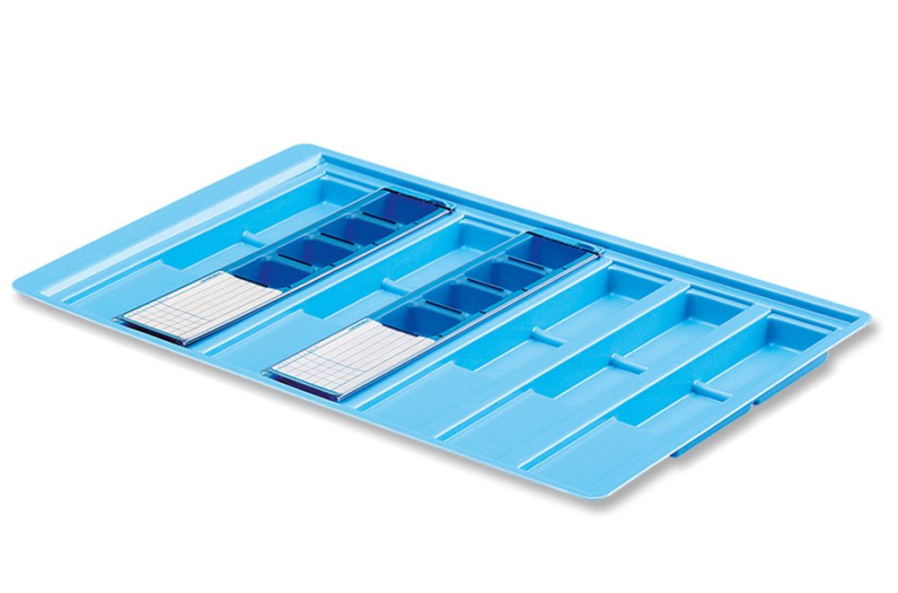 Bandeja semanal de poliestileno para transportar vasitos y/o dispensadores de medicación.