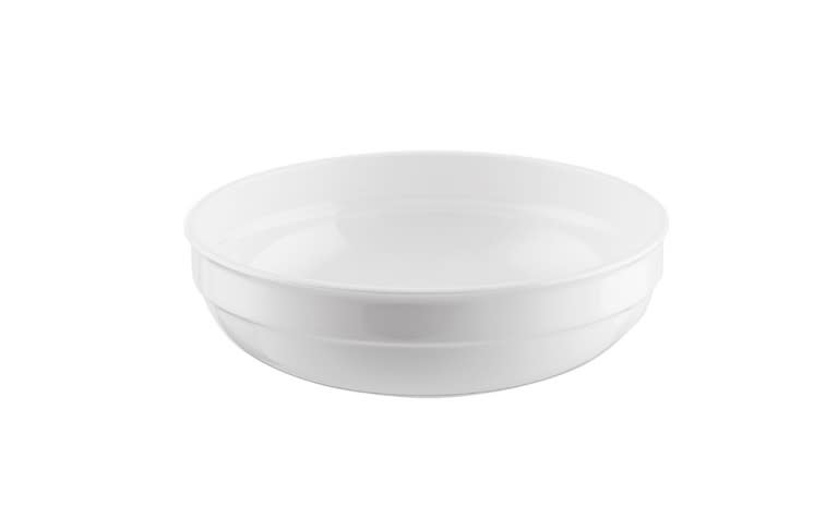Bol de policarbonato apilable, desprovisto de nervios interiores para facilitar la limpieza. Disminuye el peso considerablemente en comparación con los fabricados en porcelana Cuenta con sistema antiencaje para evitar que hagan vacío uno con otro. Dotado de fondo plano para su mejor transmisión para carros de termocontacto.