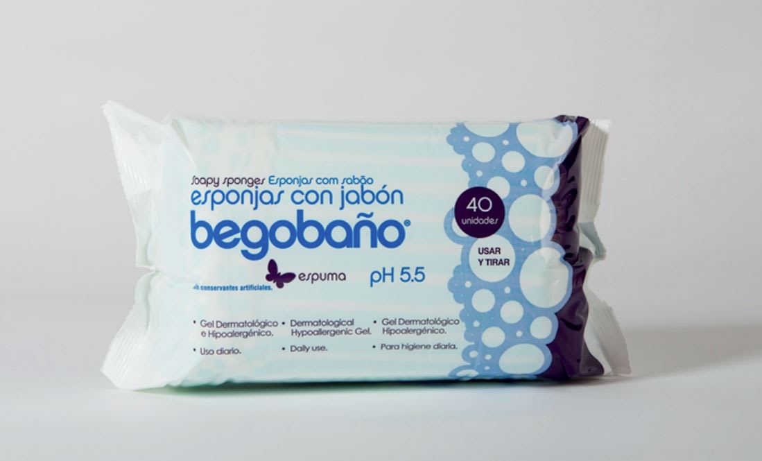 Esponja Begobaño con jabón de un solo uso para una correcta limpieza e higiene de la piel.