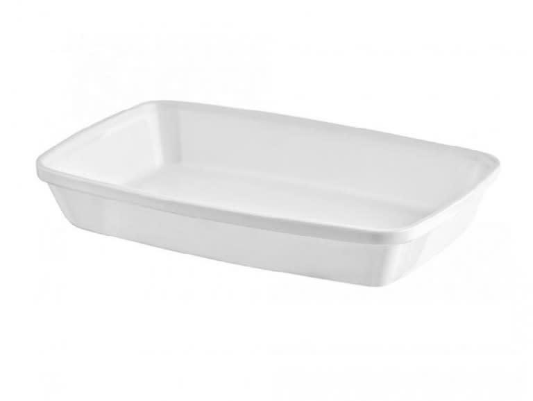 Fuente rectangular de policarbonato de 17cm. Apilable, desprovista de nervios interiores para facilitar su limpieza. Cuenta con sistema antiencaje para evitar que hagan vacío una con otra.