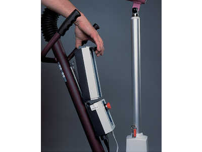 - La grúa incluye dos perchas intercambiables, que mediante un sencillo procedimiento y sin necesidad de herramientas posibilita el cambio de grúa de elevación a grúa bipedestación o viceversa en menos de 1 minuto.